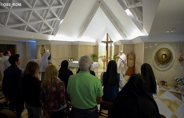 Április 19-én kedden a Szent Márta-ház kápolnájában bemutatott szentmisében Ferenc pápa a napi evangéliumi szakaszból kiindulva (Jn 10,22-30) arra buzdította a híveket, hogy Istenre nyitott szívvel fogadják be a Szentlélek újdonságait.